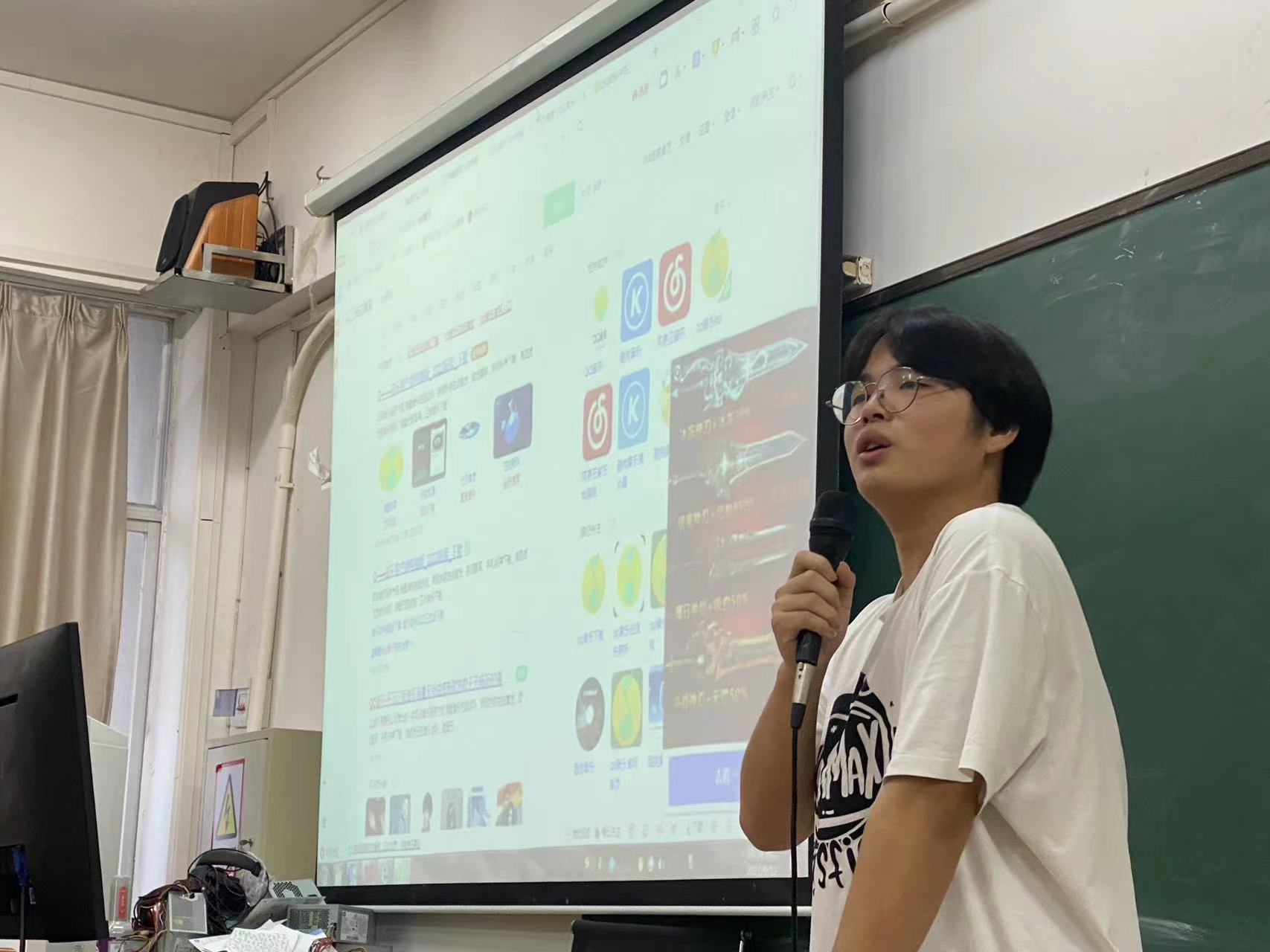 “听过这首歌吗”,然后开始播放音乐。音乐风格异常的活泼,充满了激情,老师说,这是他最喜欢的一首歌,在他觉得生活苦闷的时候就听这首歌,歌曲和老师的年龄形成了强烈的冲击,但又十分微妙和谐,让我对这位老师充满了兴趣,对课堂也充满了兴趣,课堂整体气氛也因为这别具一格的开场,彻底摆脱了闷热下午慵懒的氛围,变得热闹了起来。