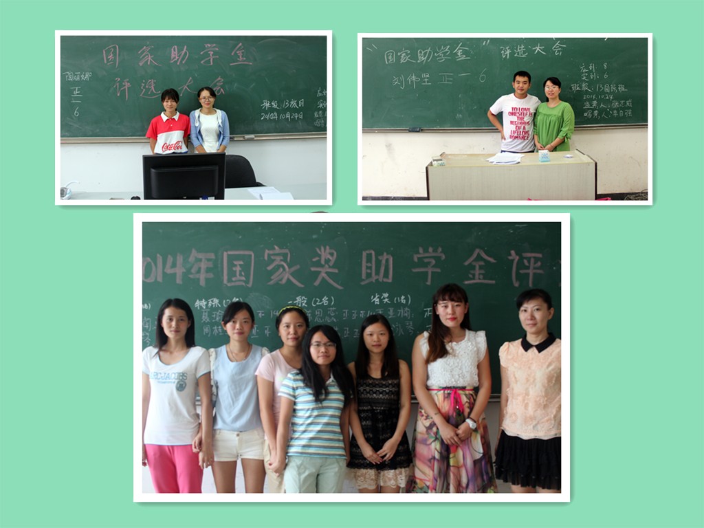 10月21日中午11:40左右,在1栋教学楼2楼的各大教室,应用外语系12级、13级、14级的同学进行了此项奖金的评选活动。出席评比活动的有各班校内导师、辅导员,团学成员和本班同学。会议由各班班长主持,评比为了公平公正,采取投票选举,由班长把各班参选人员名单公布在黑板上,同学们不记名投票,由系员工会纪检部同学唱票,记票。投票结束后,入选人和班级导师合影。而随着评比的结束,也让同学们几家欢喜几家愁,几千块钱对有的同学来说可能不算什么,但对贫困家庭的同学却是一比不小的数目。入选的同学脸上洋溢出喜悦的笑容,心想,这些奖金又可为家庭减轻一些负担!而没能被选上的同学则表现出了失落。而实际上,每次的选举都是一种考验,一种反映。选举大都是看同学们平时在班上的表现来评定。因此,未入选的同学应该好好想想,自己那些做的还不够好,不到位,而在以后的学习生活中认真改进,使自己更优秀。而那些获奖的同学则应该更加努力学习,对需要帮助的同学身处援助之手。对得起国家的补助,对得起同学的支持和鼓励。